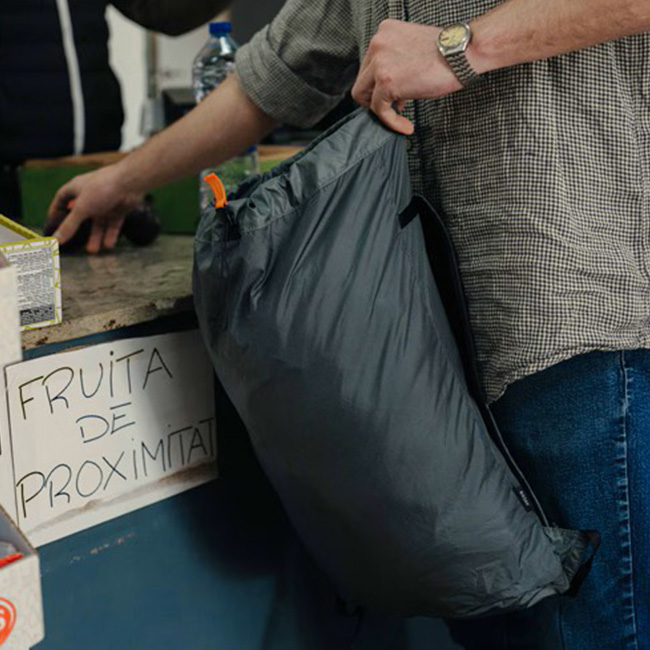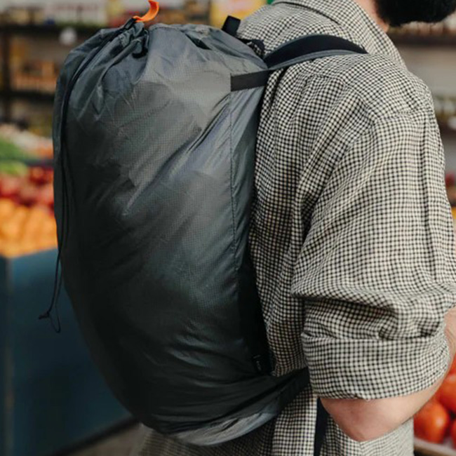旅行時のサブバッグやアタックザックとしても使いやすい設計です。素材にはPFASフリーの70D Recycled Robic Nylonを採用し、軽量で耐久性に優れた仕上がり。