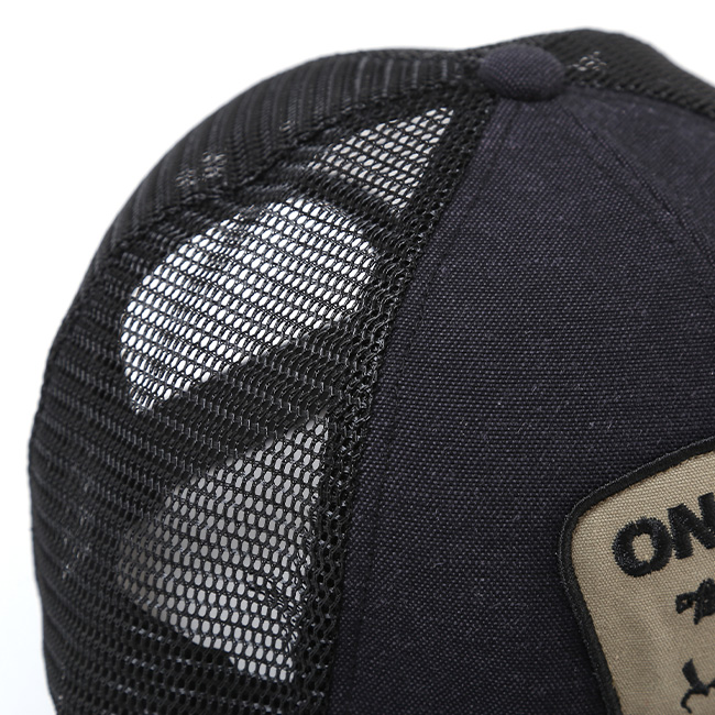 フロント部分にロゴタイプ入りワッペンを配したメッシュキャップ。落ち着いた色合いで、アウトドアにも普段使いにもぴったりです。