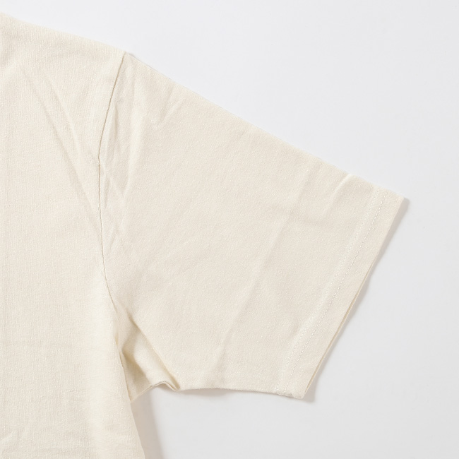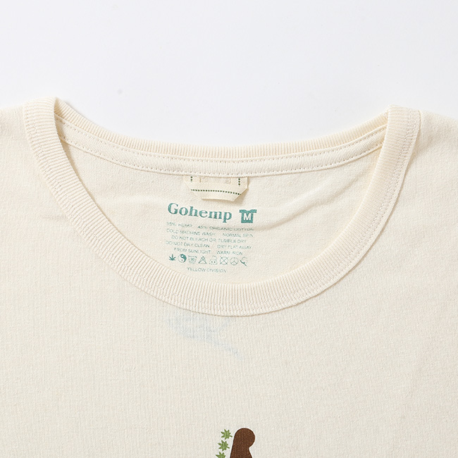 遊び心のあるGOHEMPらしいメッセージを組み込んだグラフィックTシャツです。ヘンプによるナチュラルな表情と吸水速乾に優れたドライな質感、さらにはオーガニックコットンの柔らかな肌触りが特徴です。