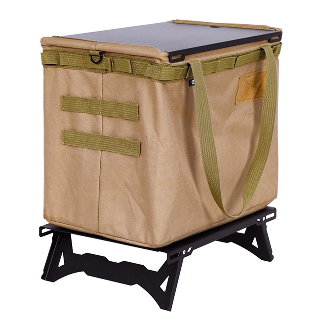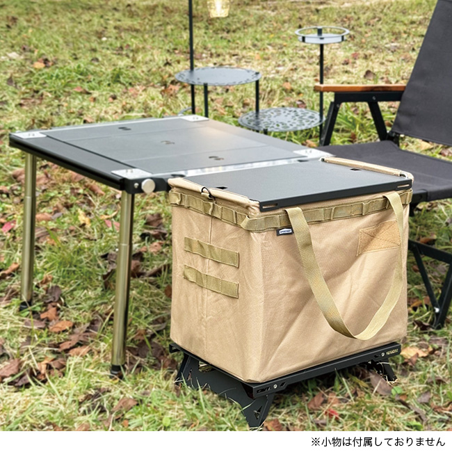 本商品の使用時はワンタッチバケットを含む合計の高さが 400mmになる設計のため、スノーピーク社製IGT テーブルの 400脚を使用した高さと同じになります。さらにワンタッチバケットの天面にも装着可能となっており、車載の際にワンタッチバケットを2段にスタッキングして積み重ねることも可能です。