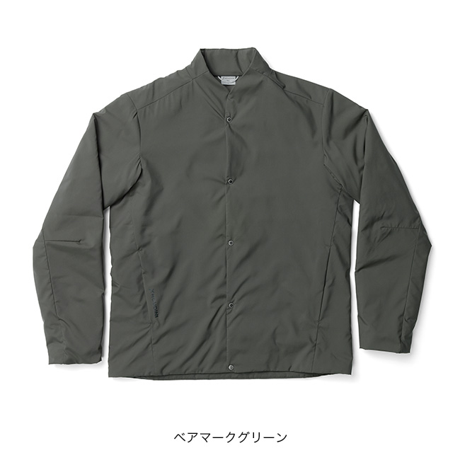 防風性と透湿性に優れ、耐久撥水(DWR)加工が施されたC9 Ripstop™を表生地に使用し、濡れても保温性を損なうことのないPrimaLoft® Gold Active+を中綿として使用しています。フロントの開閉はボタン仕様で、内側にメッシュポケット、両サイドのポケット、さらに右ポケット内部にはパッカブル機能を備えたジッパーポケットを配しています。