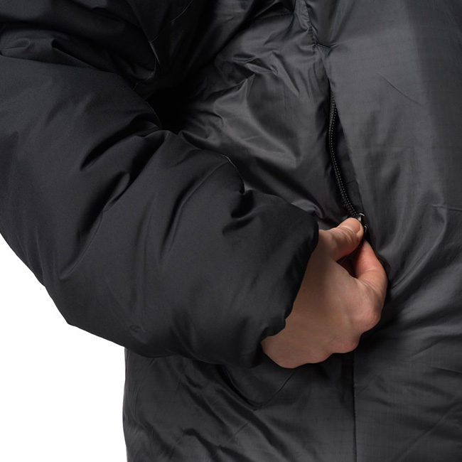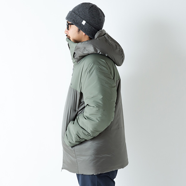全体的には200g/m²、脇下から袖内側にのみ170g/m²を採用し、ダウンと同様の暖かさと重量比ながらも軽量で耐水性に優れ、柔らかな素晴らしい感触を備えています。