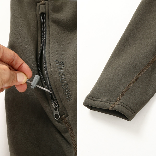 生地もPower Houdiと同じく、比類のない機能性を備えるPolartec® Power Stretch Pro®を採用しており、この滑らかで耐久性のある表面と、優れた肌触りと保温性を生み出す裏面の構造は、究極の組み合わせです。