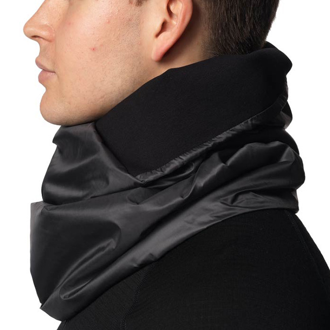 首や頭に巻いてワンループとしても、ダブルループとしても着用でき、寒い日にコーヒーを飲んだりバスを待っているときにはシートパッドとして機能し、キャンプ中には枕としても使用することができます。
