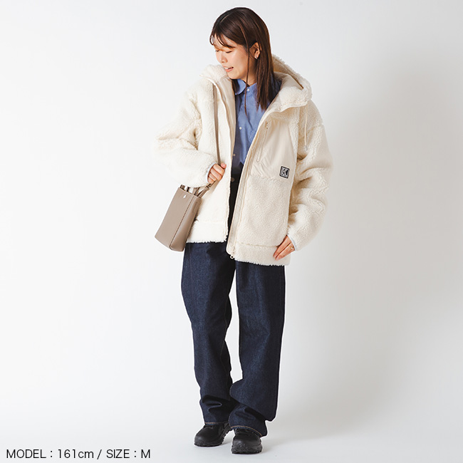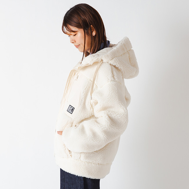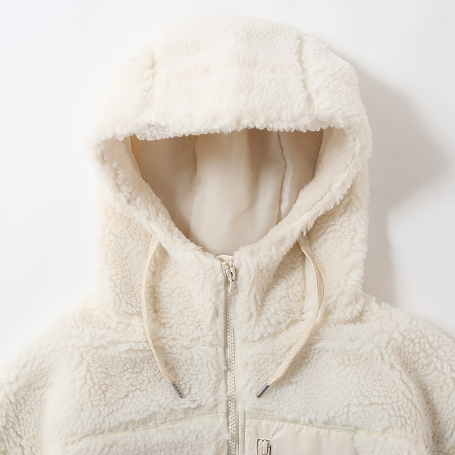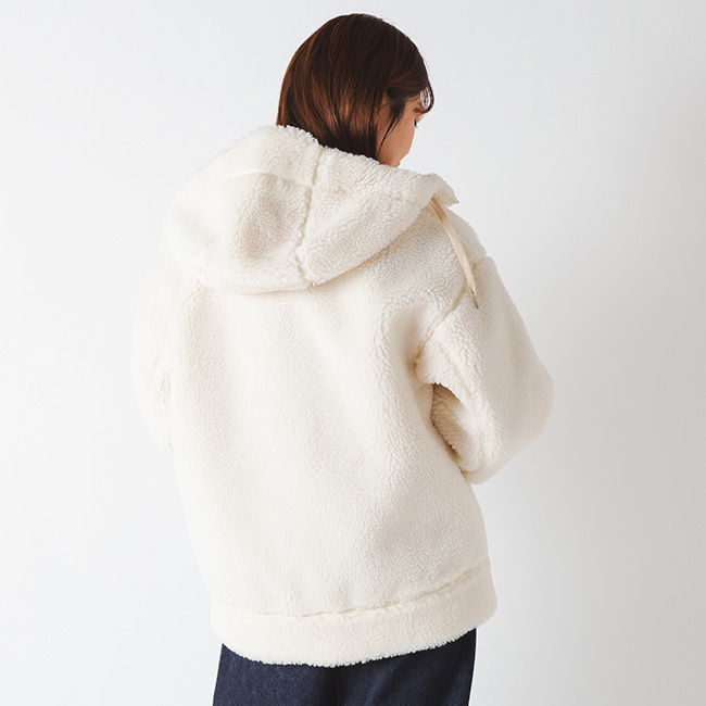 独特のボリューム感のある素材を使った、フーディタイプのジャケット