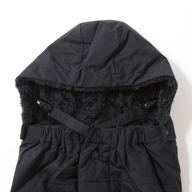表地は防水透湿性を備えた生地で、裏地はふわふわとした毛足が心地よいシャギーフリースで保温性もプラス。防風性もあるため、風が冷たいときにも重宝。