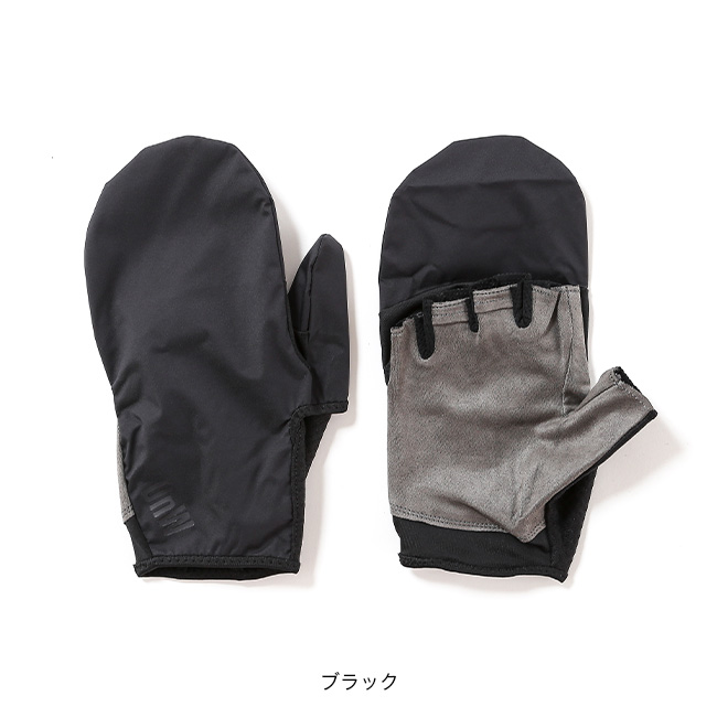 ハーフフィンガーグローブに収納式のフードを搭載したトレイルランニング用グローブ