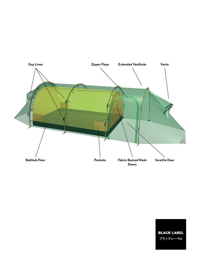 GTバージョンは入り口部分をのばし前室をさらに大型にすることにより、充分なギアストレージ/フリースペースを作り出しました。スペースを広くした分、長期の極地遠征やロングトリップから、ファミリーキャンプまで最適なテントになります。2台の自転車や大きなギアを収納することが可能です。