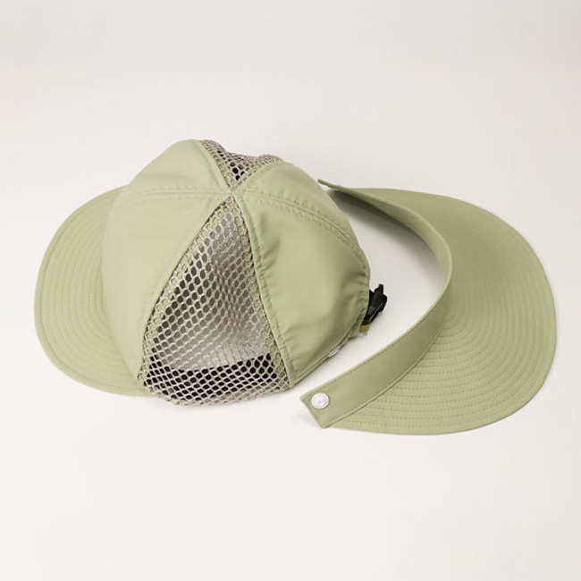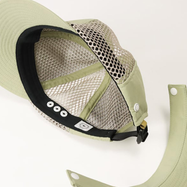 着脱可能な首の日焼け防止用バイザー付きのメッシュキャップ。