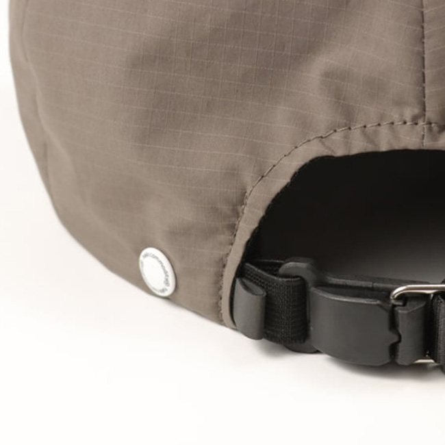 撥水性のあるライトウェイトなポリエステルリップストップのキャップ。