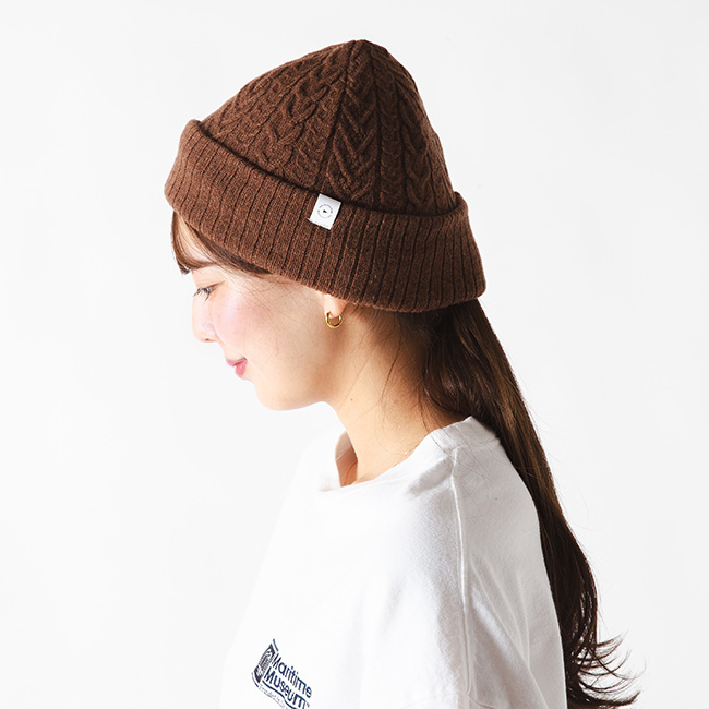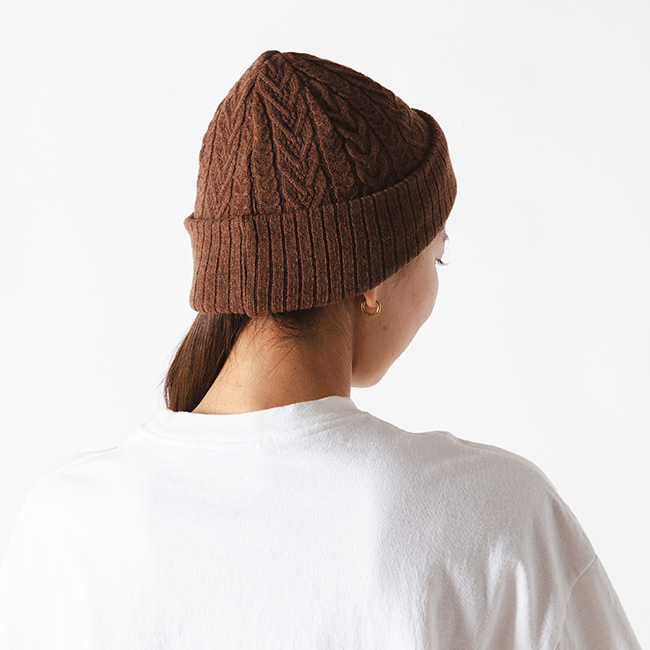 表面は暖かみのあるケーブル編み、裏面はシンプルなリブ編みで、気分やスタイルに合わせてリバーシブルで使用可能。優れた保温性と快適なかぶり心地を備え、デイリーからアウトドアまで活躍するニット帽。