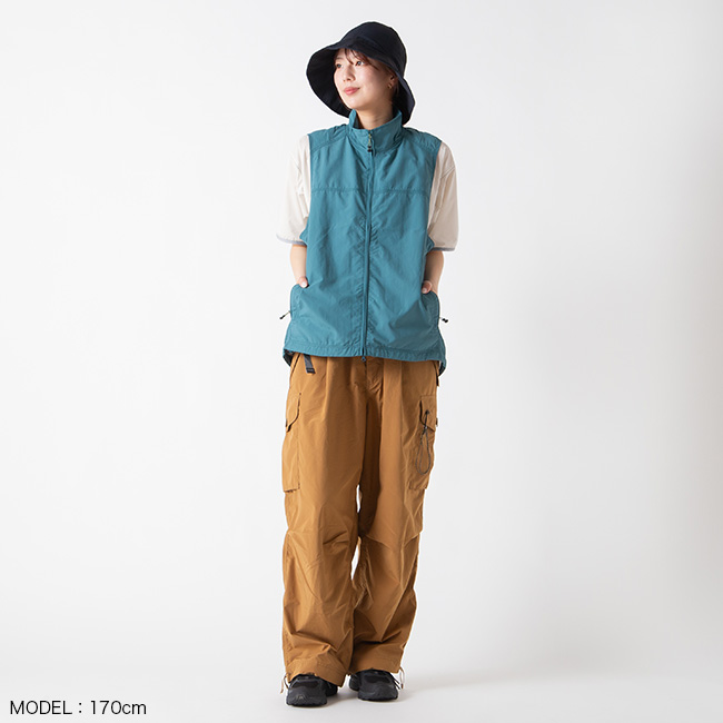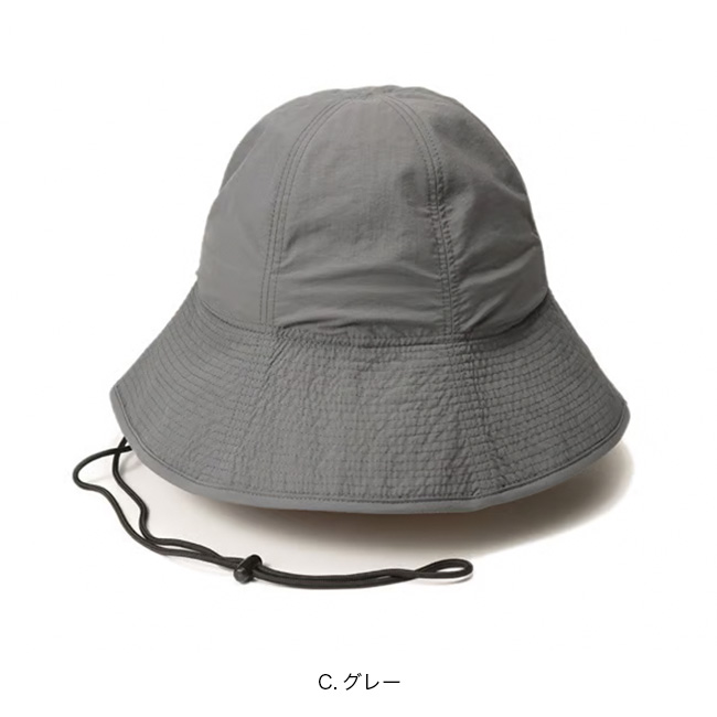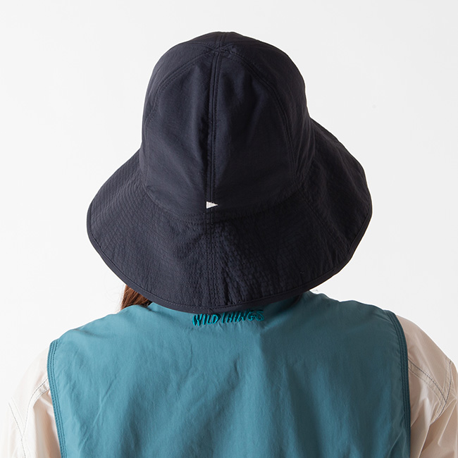 コットンのような滑らかな肌触りが心地良い撥水ナイロンのロングブリムハット。