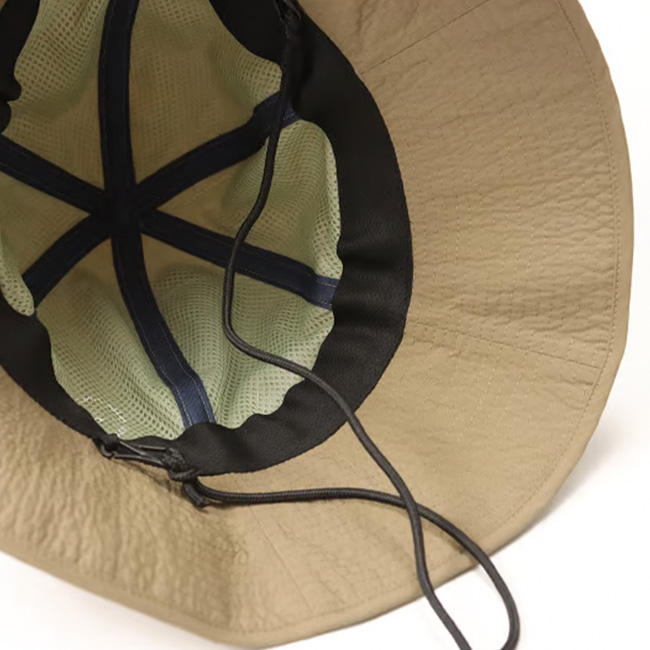 つばに入れたステッチで適度なハリを持たせています。機能面を考慮し裏地にはメッシュ生地を使用。