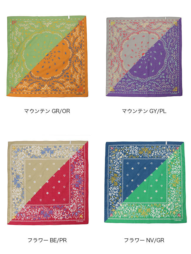 斜めに配色を切り替えたデザインが特徴のバンダナ。