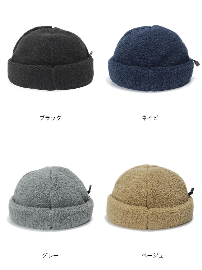 軽くて柔らかい肌触りのボアを使用したキャップ。