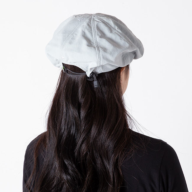 自然なシワ感とハリのあるナイロン素材を使用した、軽やかで機能的なベレー。