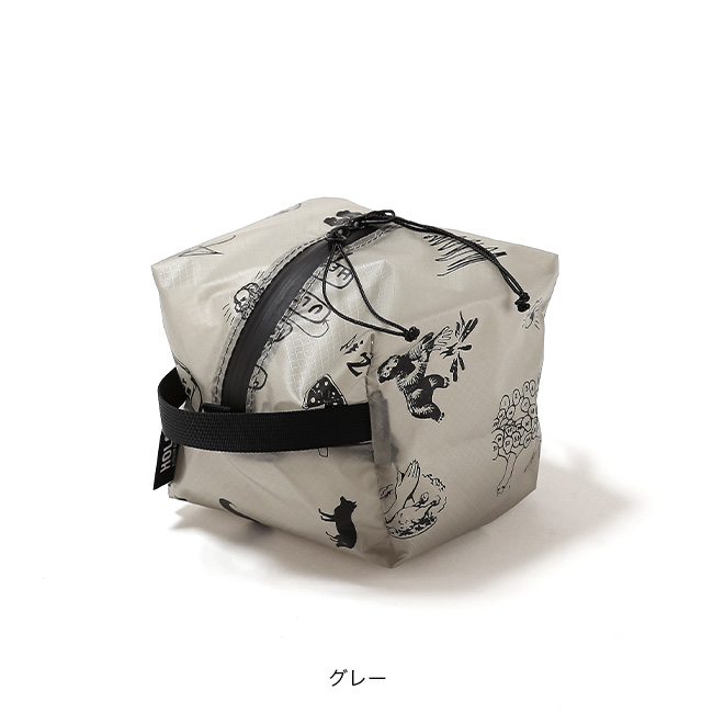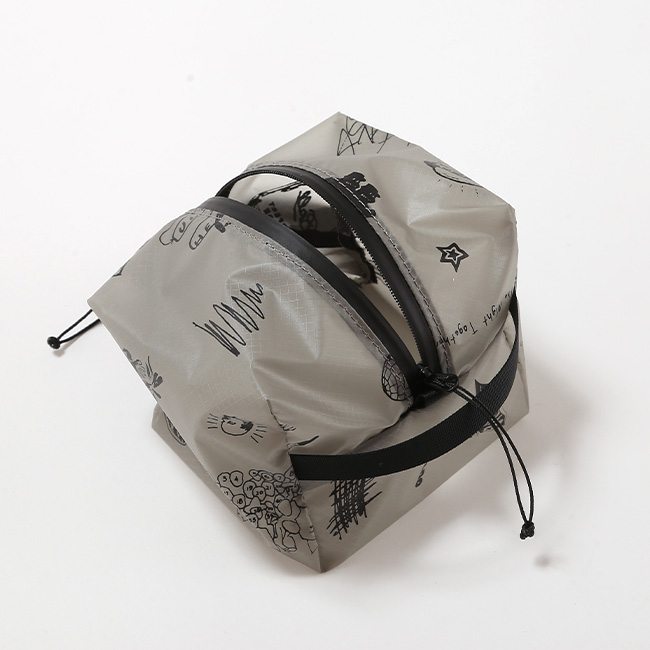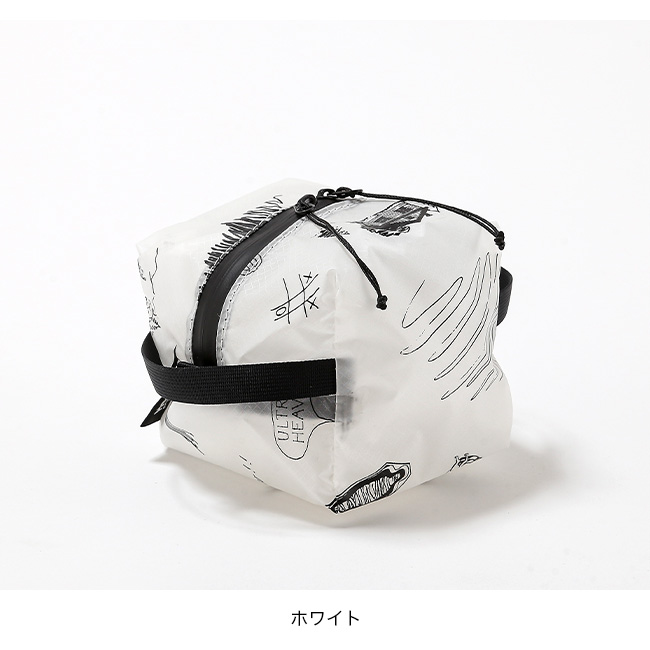 立方体のころんとしたフォルムは愛らしさだけでなく、ギアや小物をすっきり整理できる実用性も兼ね備えた、マルチに活躍するポーチです。透け感のあるシルナイロン素材を使用しており、ヘッドライトを中に入れれば、テント内で簡易ランタンとして使用することも可能。