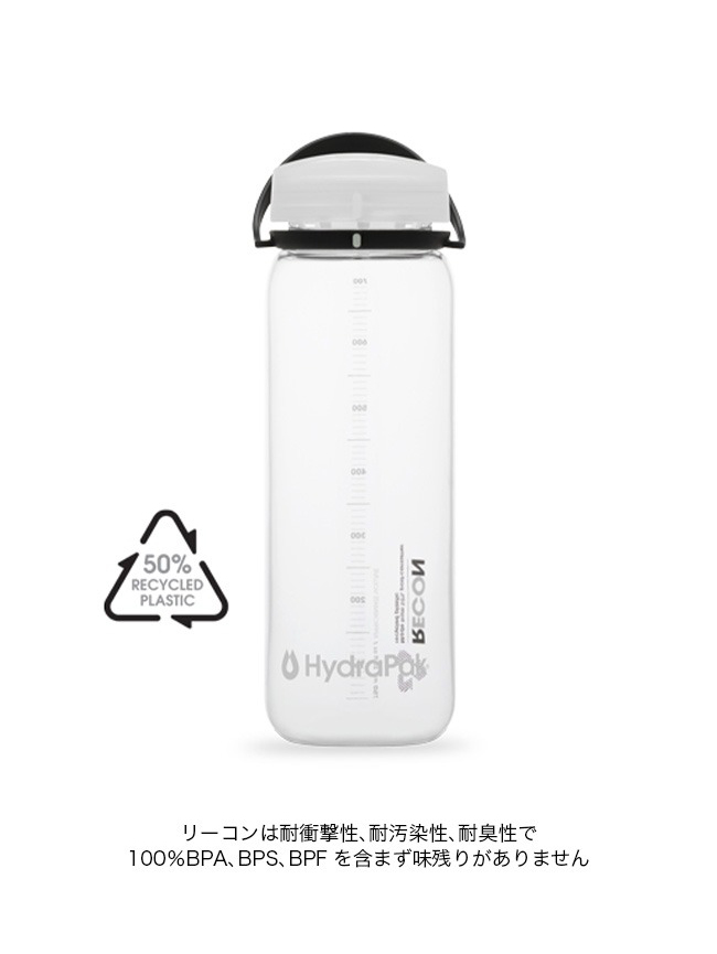 ハイドラパック リーコン ツイスト&シップ 750ml Hydrapak BR01 水筒 クリア マイボトル ウォーターボトル フェス 食洗機使用可能 おしゃれ キャンプ アウトドア