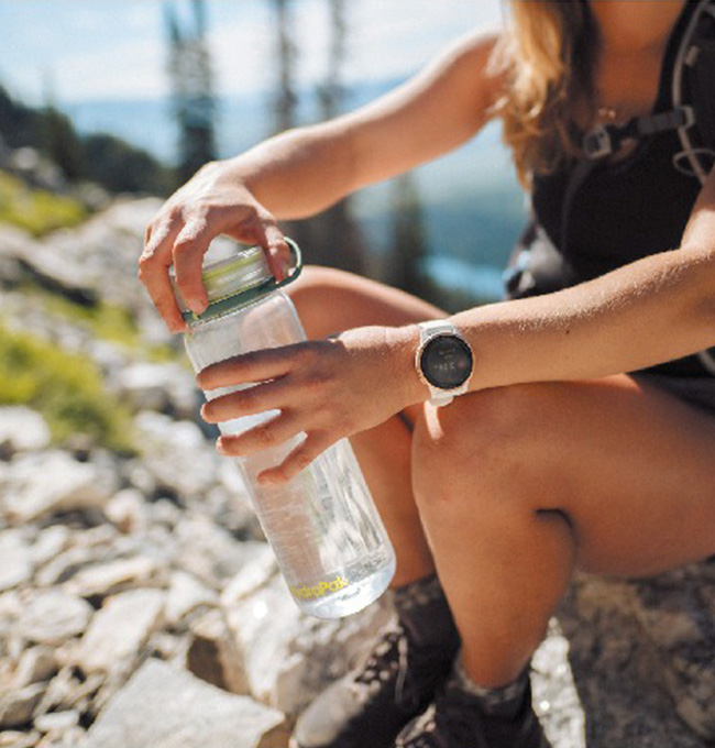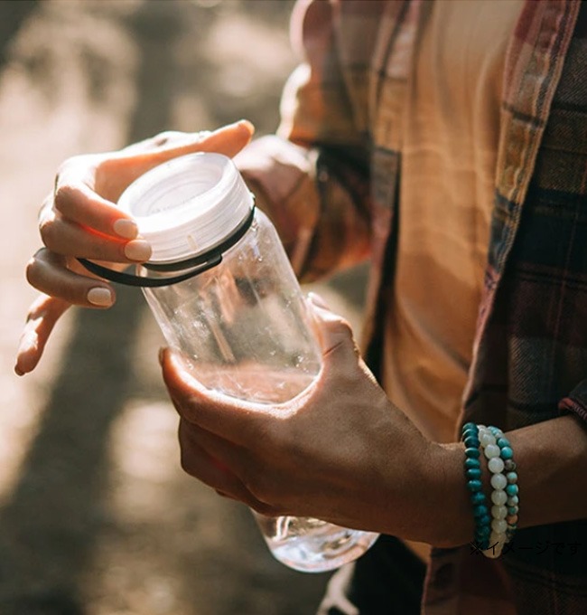 キャップとボトル本体は清潔感のあるクリアカラーで、Tritan Renew Techを採用。丈夫で汚れにくく、匂いもつきにくいボトルです。