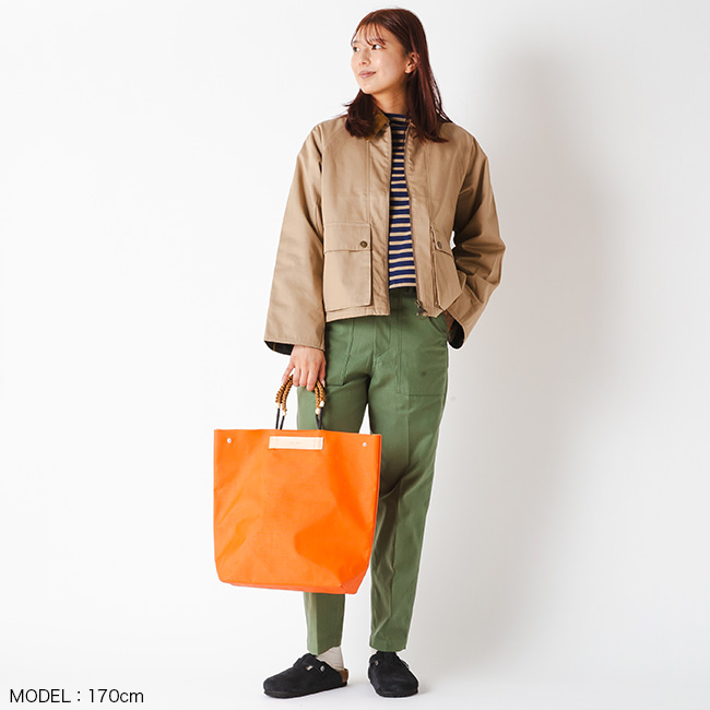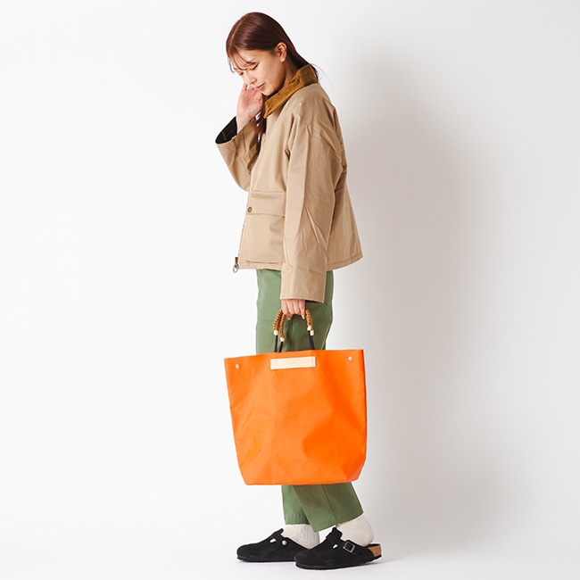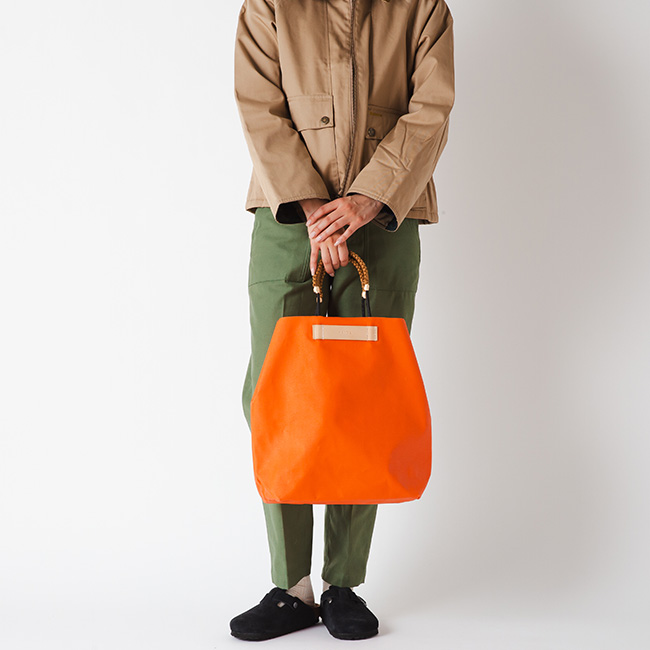 汚れや雨に強い、独自に配合した蝋引きキャンバスを使用したボックス型トートのご紹介です。
