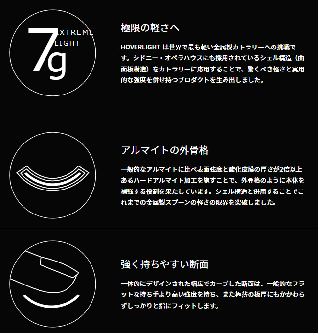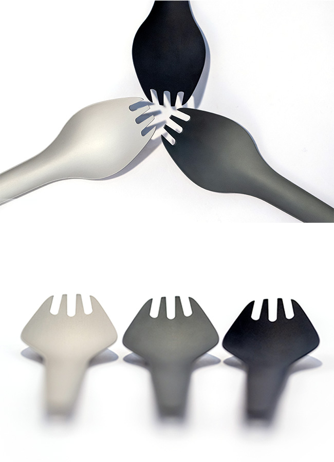 シドニー・オペラハウスにも採用されているシェル構造(曲面板構造)をカトラリーに応用することで、驚くべき軽さと実用的な強度を併せ持つプロダクトを生み出しました。