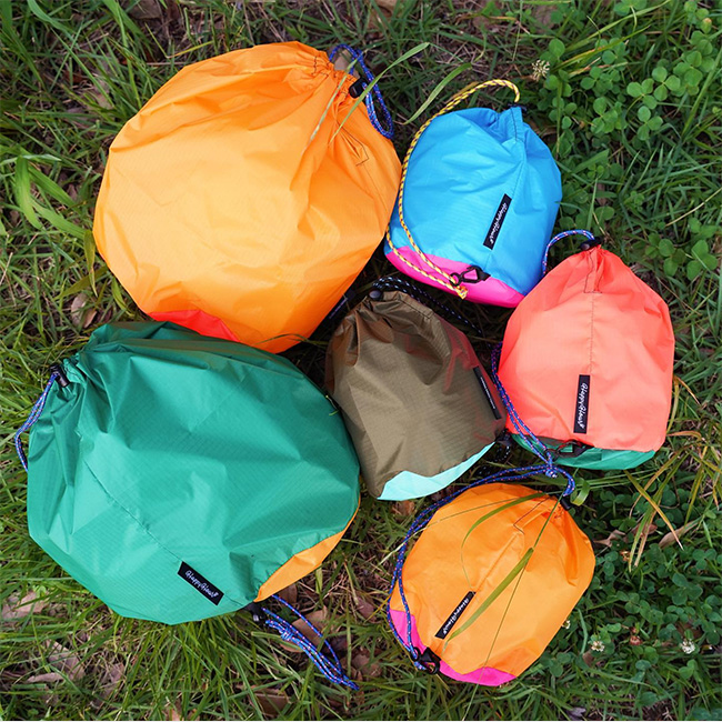 着替えや汚れ物を何も考えずにどんどんぶち込める、IPA(重め)な8Lサイズのサックです。一度の製作で同じ配色にならないようにしてるので、カラーは届くまでのお楽しみですが、どれも一点一点こだわりの配色で仕上げられています。