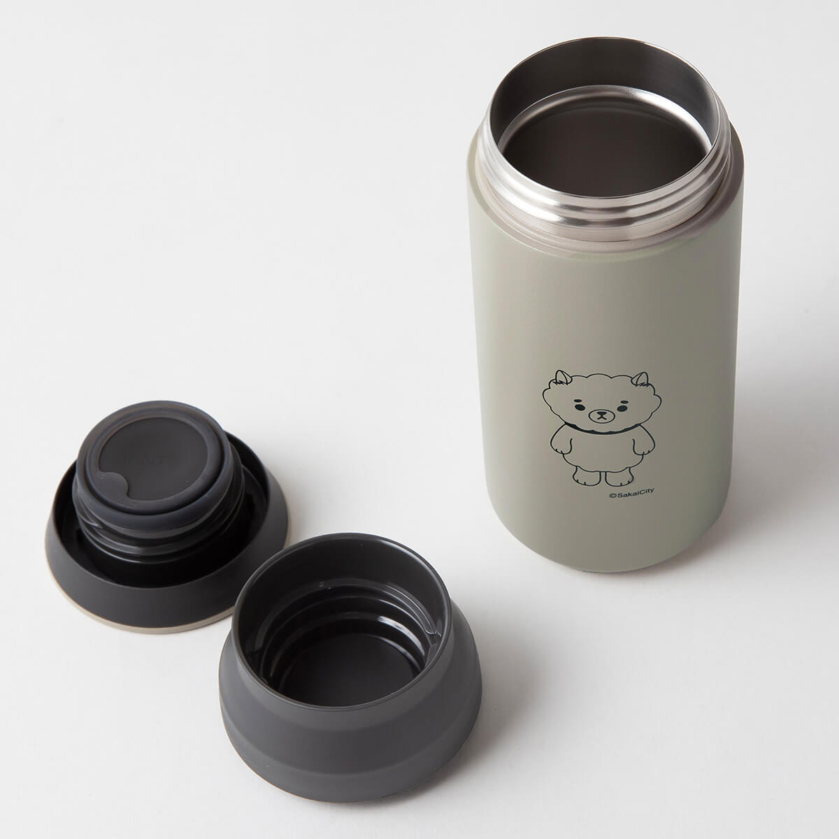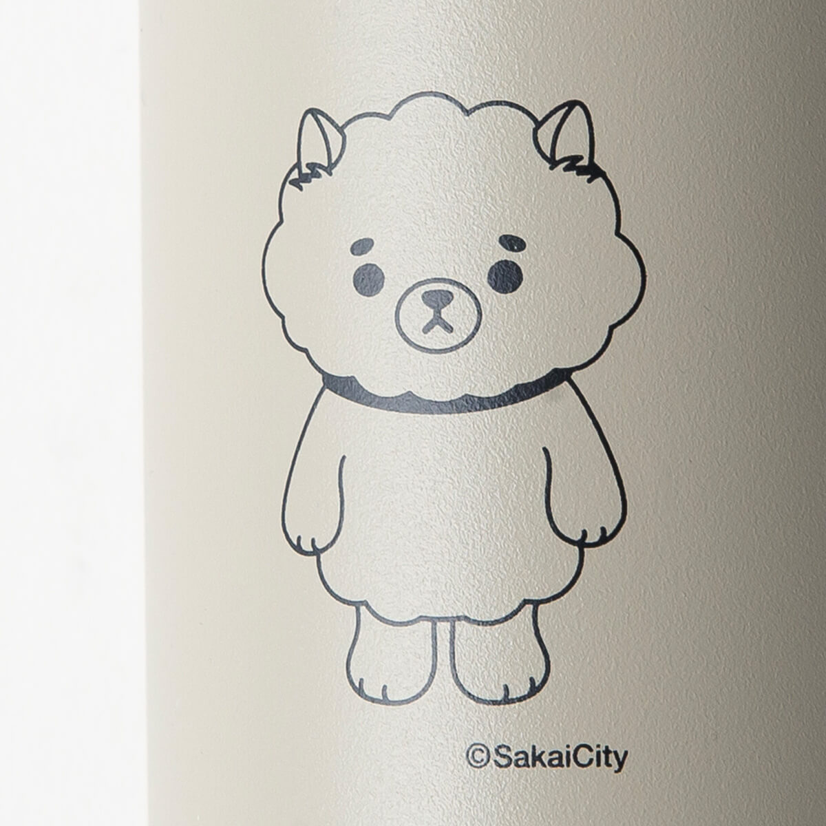 耐久性と保温保冷効果に優れた、坂井ほや丸イラスト入りステンレス二重構造ボトル。
