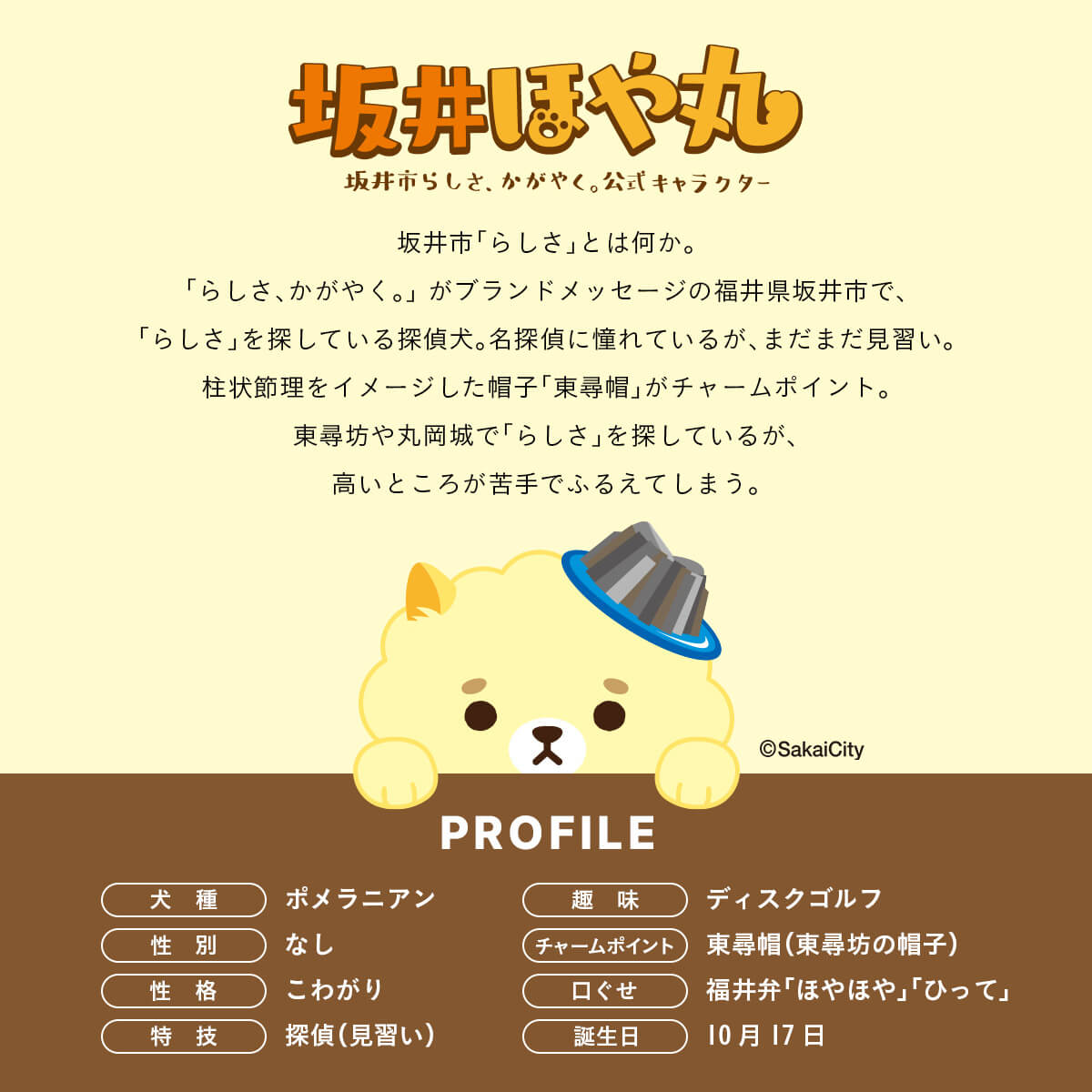ゆるキャラグランプリ2024で3位に輝いた福井県坂井市の公式キャラクター、坂井ほや丸とのコラボレーションアイテムです。