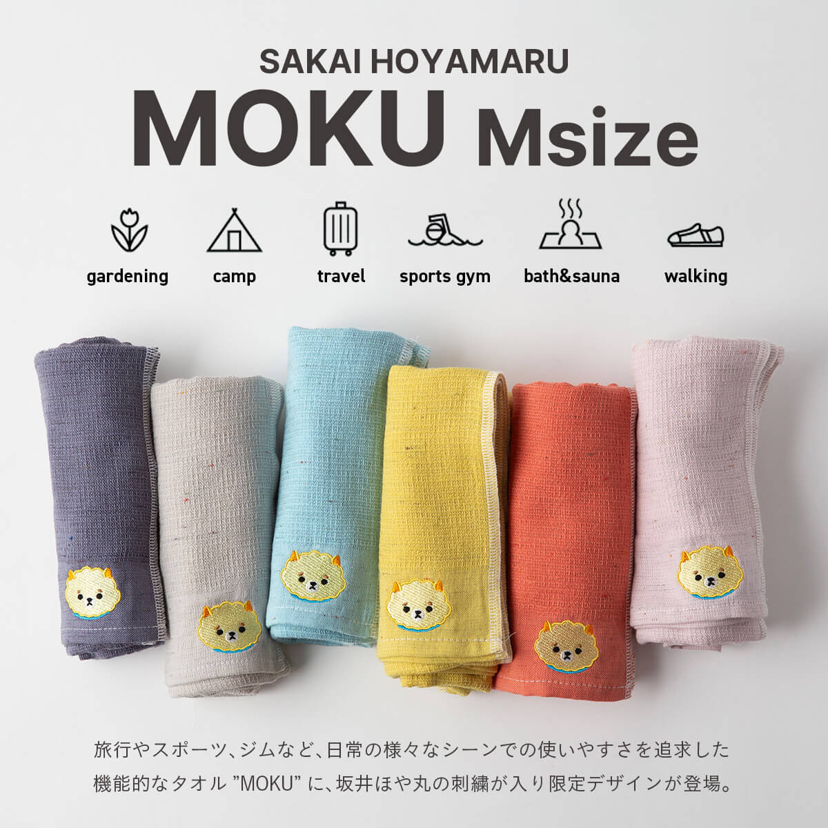 速乾性と吸水力が人気のMOKUに、坂井ほや丸の刺繍入りデザインが登場!