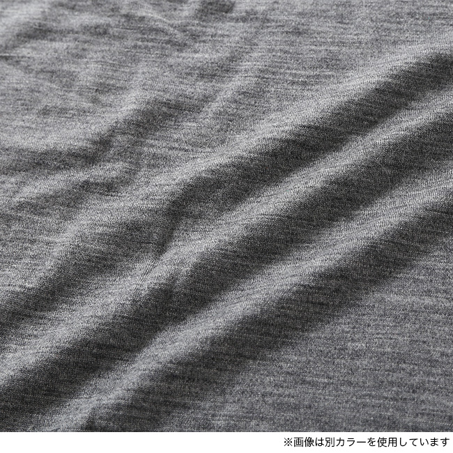 シンプルなクルーネックタイプで、同系色刺繍ロゴのみのすっきりしたデザインに仕上げています。素材はメリノウール100%で、肌に直接触れてもチクチクしにくい優しい肌触りが特徴。