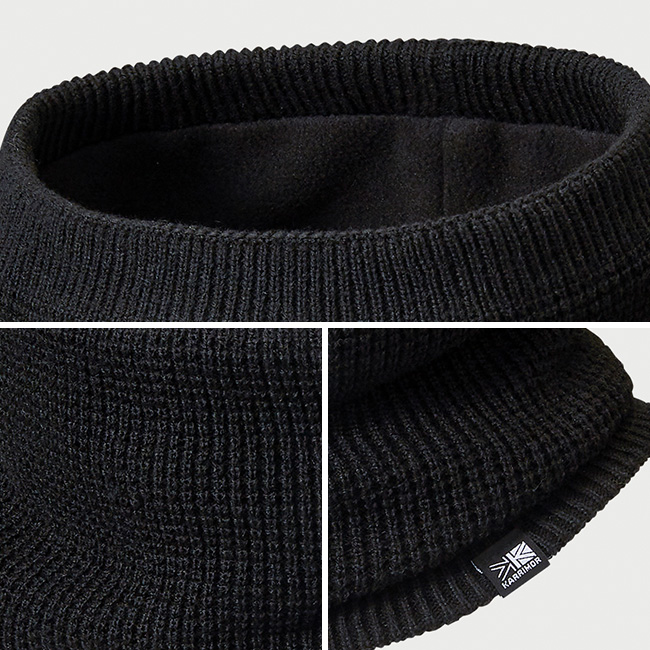 ウールブレンドの糸を緻密なワッフル編みにした表地に、密度が高く、保温性に優れたフリースをライニングしたネックウォーマー。■ブランド名:KARRIMOR