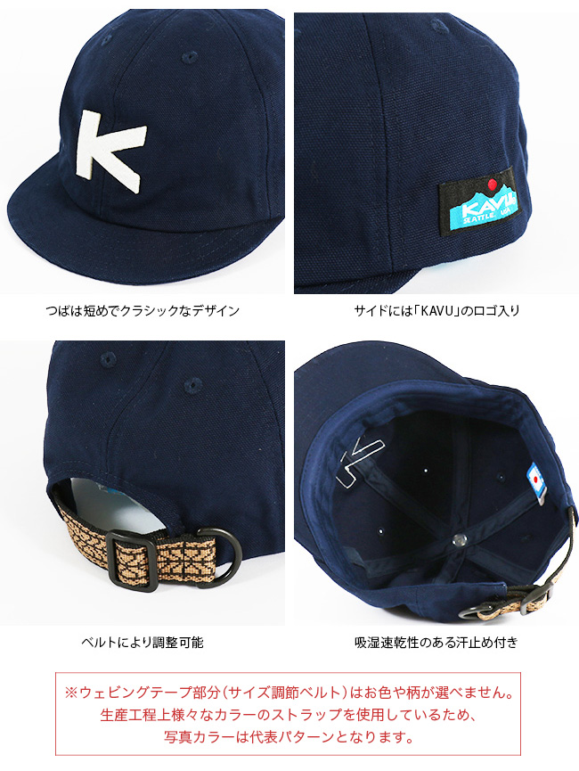 KAVU カブー ベースボールキャップはつばが短い往年のメジャーリーグを思わせるクラシックなデザインのキャップです。KAVUのKのワッペンがよりベースボールらしさを醸し出しています。