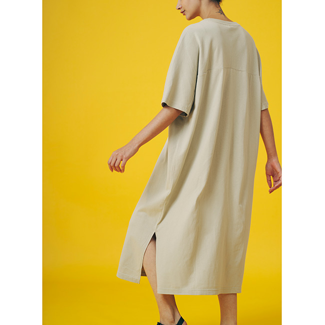 ボディーラインを拾わない、ゆったりとしたフォルムの、コットン製で着心地の良いワンピース。