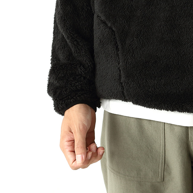 毛足の長いシャギーフリースを採用することで、軽量ながら優れた保温性を発揮し、秋冬のアウトドアやタウンユースにぴったりの一枚です。ゆったりとしたシルエットで重ね着もしやすく、動きやすさと快適さを両立。