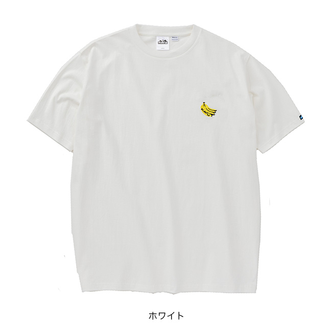 胸元にちょこんと刺繍されたバナナのモチーフがなんとも愛らしい、コットン製のTシャツ