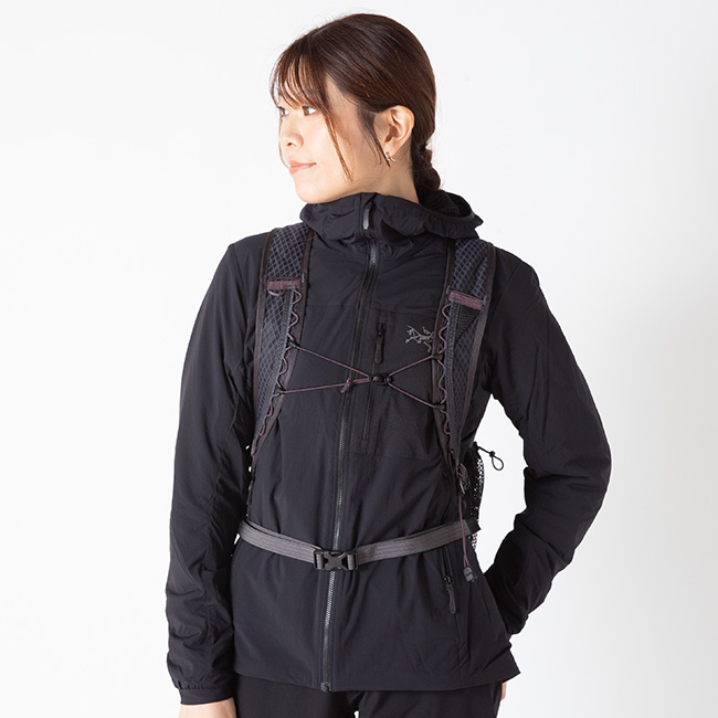 ショルダーストラップのバンジーコードやトグルループでトレッキングポールやハイドレーションシステムを取り付けることができます。