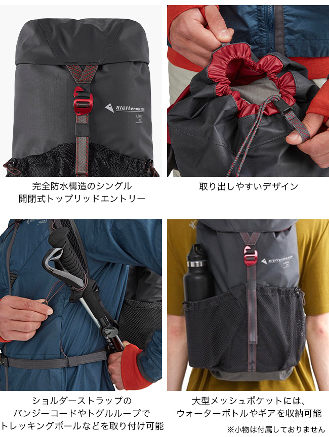 ファストトレッキングのために作られた、シームテーピング加工が施された完全防水バックパック。サイズ感とスタイリングの良さからデイリーユースでも活躍するベストセラーモデルです。