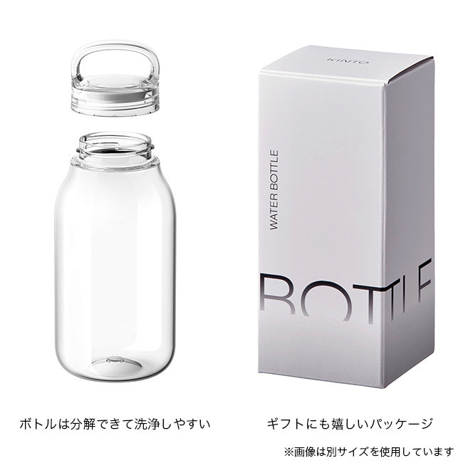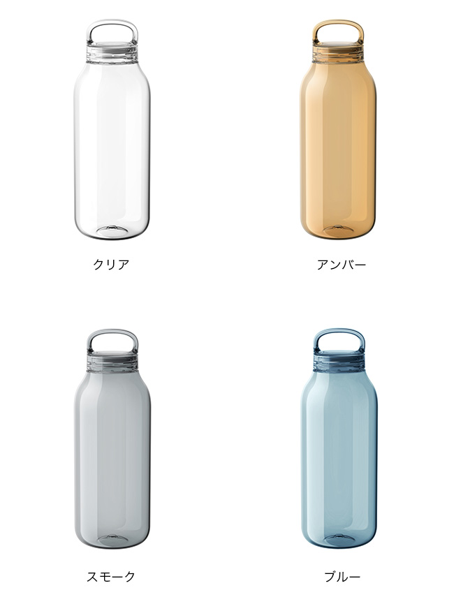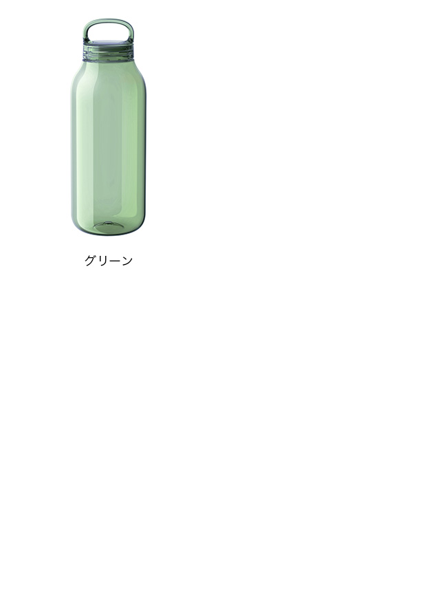 ■ブランド名:KINTO ■商品名:ウォーターボトル500ml ■商品型番:ー ■カラー:クリア【20131】,アンバー【20132】,スモーク【20133】,ブルー【20134】,グリーン【20135】 ■サイズ:φ70 x H200 mm ※本体の高さ(蓋なし) H172 mm ■素材: (本体)PCT樹脂 / 耐熱温度: 80℃ ※認証リサイクル材料含有率50%以上 (パッキン)シリコーンゴム ■重量:約75 g ■生産国:中国 ■容量:500 ml ■耐熱温度:100℃ ■仕様:食洗機使用可