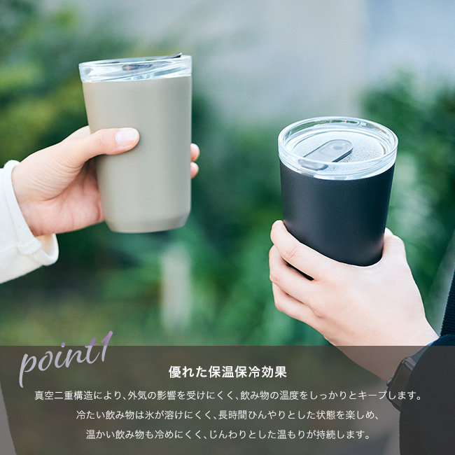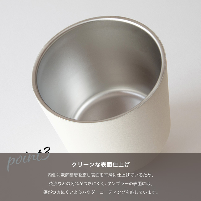 飲み心地の良さや手入れのしやすさ、ディテールにこだわりぬいた設計で、温度や風味をキープするステンレス製の真空二重構造。