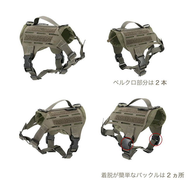 ペットのコントロールや持ち上げがしやすく、胸部と腹部のバックルで着脱簡単。