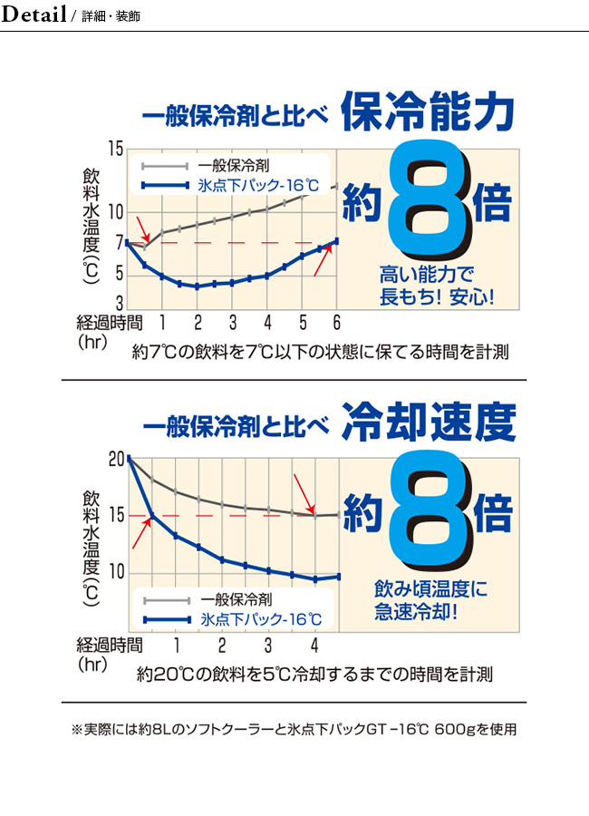・保冷能力8倍(一般保冷剤に比べ)