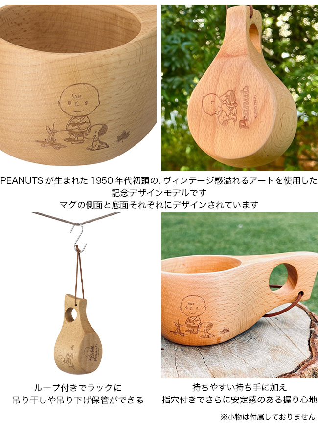 コミック「PEANUTS」の誕生75周年を記念したシリーズが登場。天然のブナ材を使ったククサに、1950年代初頭のアートを使用したヴィンテージ感溢れるデザインを施しました。