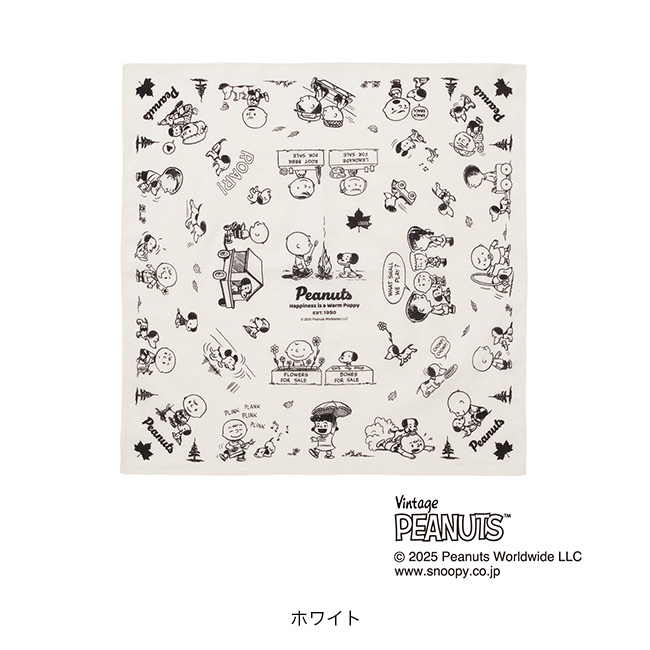 コミック「PEANUTS」の誕生75周年を記念したシリーズが登場。1950年代初頭のアートを使用したヴィンテージ感溢れるデザインが特長のバンダナ。