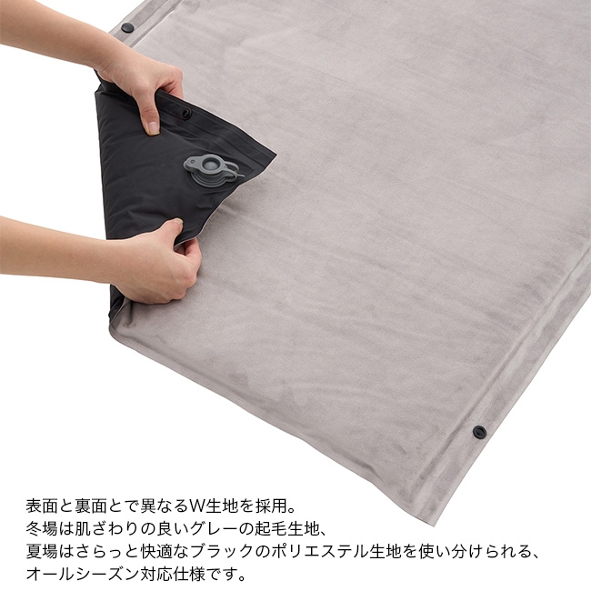 W生地採用でオールシーズン対応、自動で膨らむリバーシブルマット。