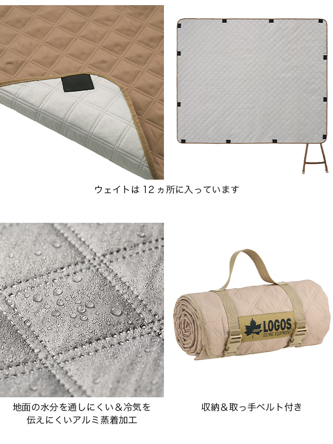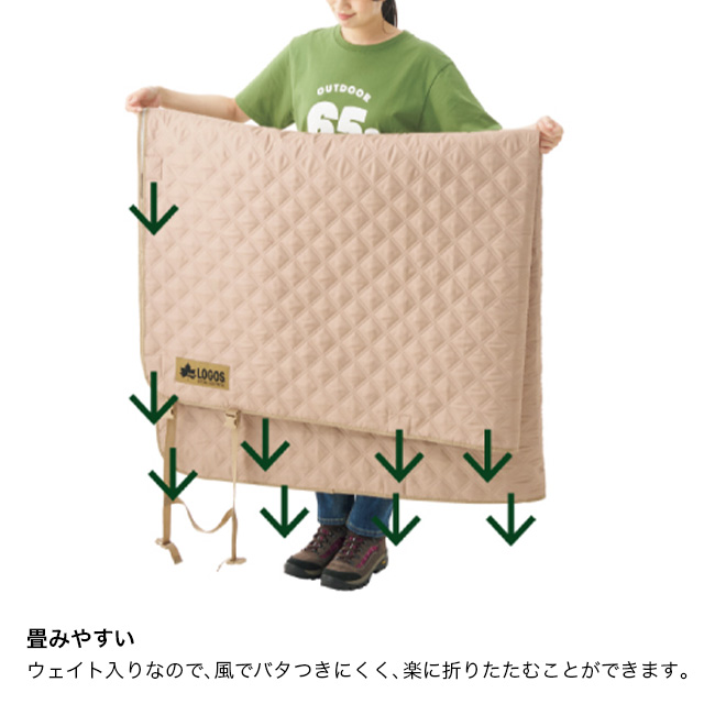 ロゴス 風で飛ばないレジャーシート(160×200cm・ウェイト入り) LOGOS 71809775 キルティング コンパクト 大判 ピクニック キャンプ アウトドア