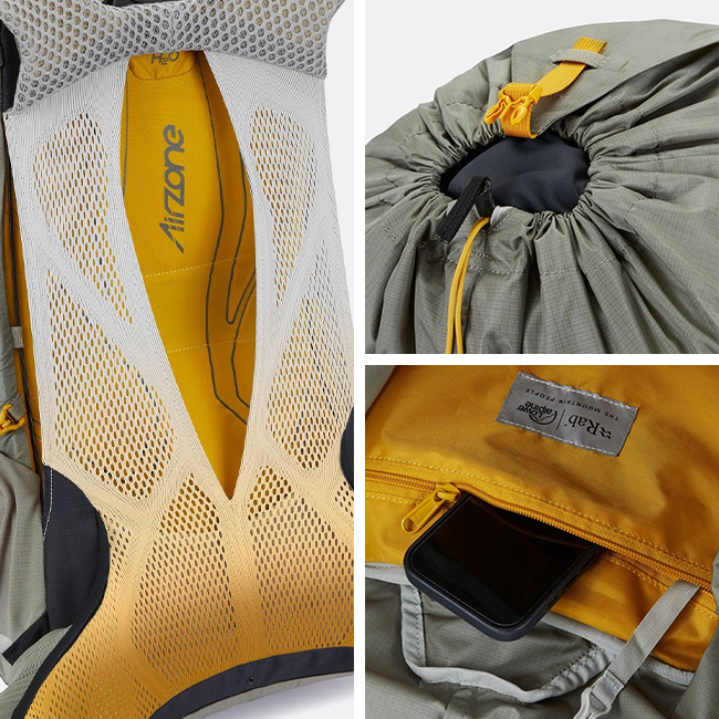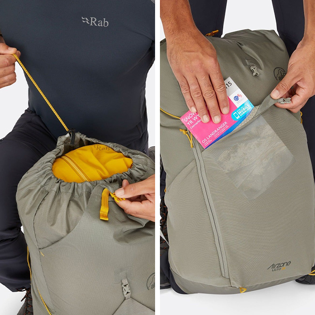 AirZone Ultra の細部は、荷重を安定させる超軽量コンプレッションストラップから、簡単にアクセスできる簡素化されたドローコードエントリーに至るまで、重量とかさばりを最小限に抑えるように設計されています。