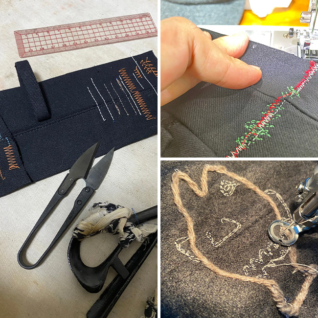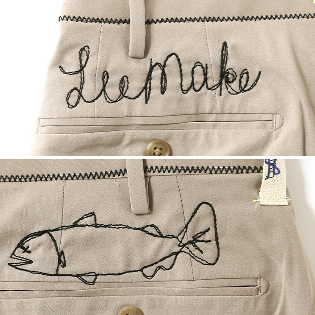 ヒップには「LeeMake」と「わかさぎ風魚」フリーハンドのステッチも入ります。