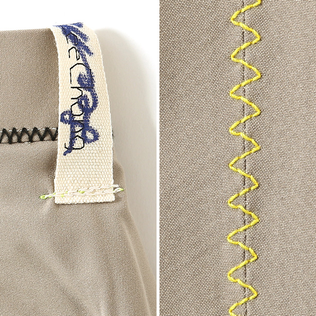 両脇部分、膝裏部分にギザギザステッチがされています。