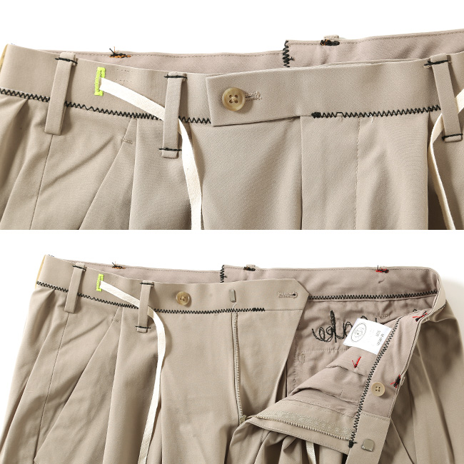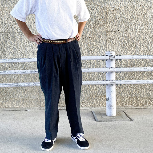 クオリティがとても高い国内ブランドのリメイク商品。アンクル丈に最適な、太めの2タックテーパードシルエット。