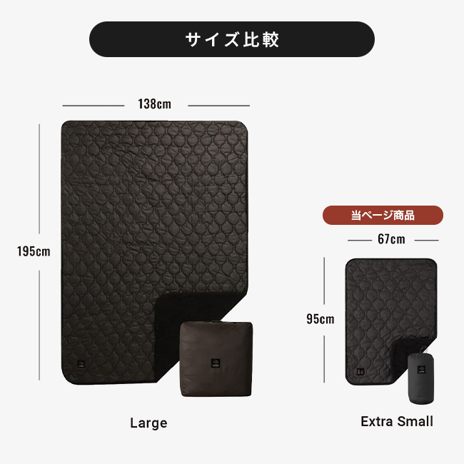 XSサイズは、ひざ掛けぴったりなコンパクトタイプ。